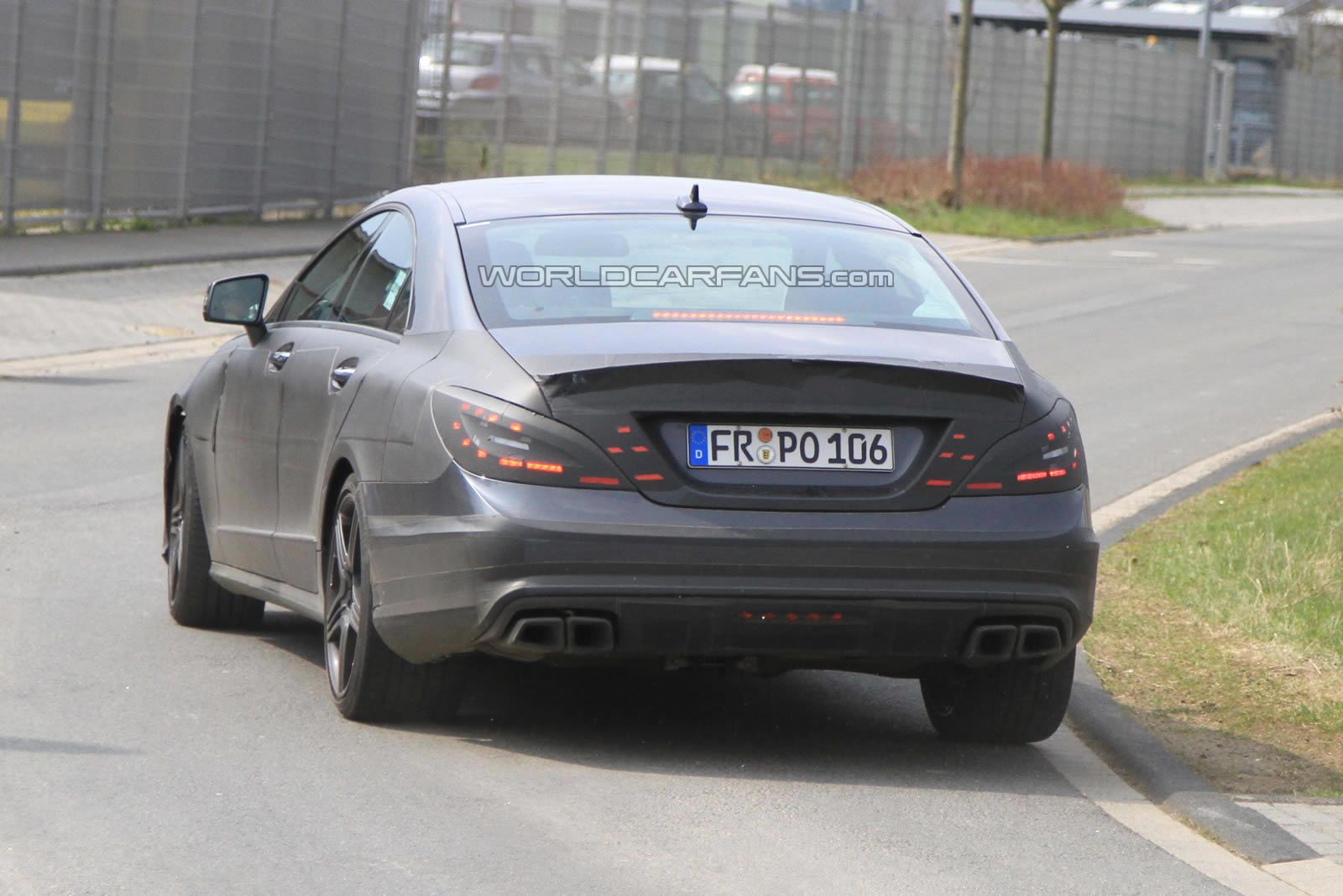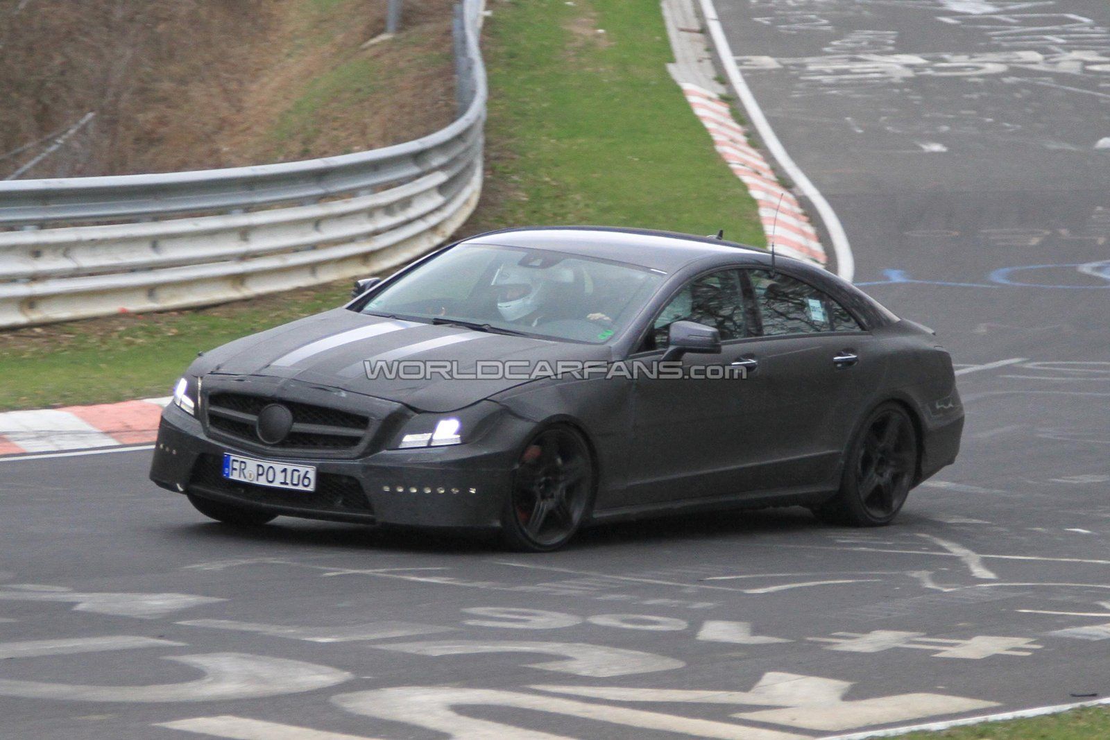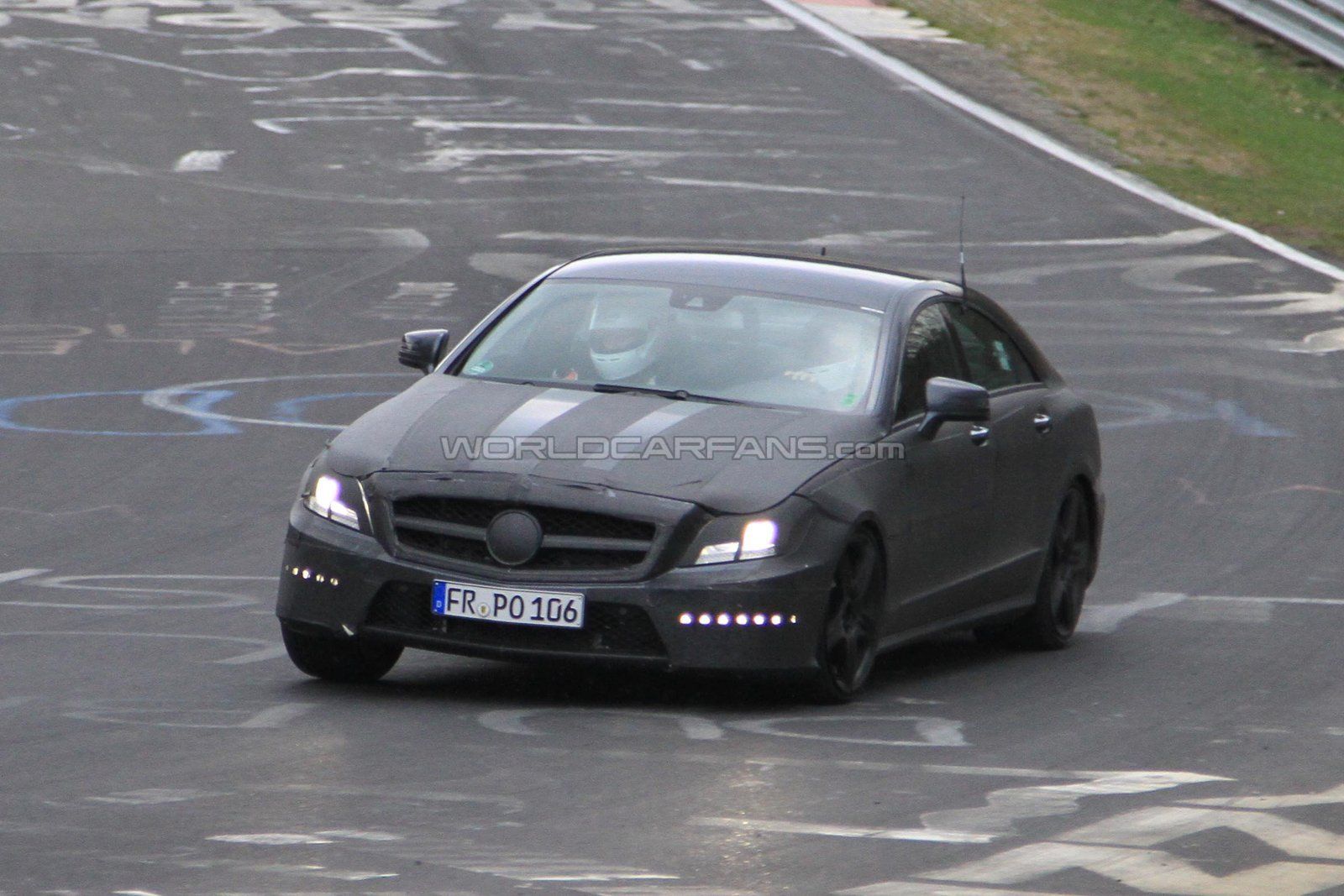 Der aktuelle CLS (219) feierte 2004 seine Prämiere (der Prototyp auf der IAA 2003) und sein Nachfolger steht bereits in den Startlöchern. Der neue CLS (Baureihe 218) wird etwas bulliger, länger und soll auch im Innenraum mehr Platz im Fondbereich bieten. Wie auch der Vorgänger soll er auf der E-Klasse basieren. Die vierflutige Auspuffanlage mit sonorem Sound und rechteckigen Endstücken lassen keinen Zweifel, dass es sich um den CLS 63 AMG mit dem jüngst bei AMG vorgestellte AMG 5,5 Liter Biturbo V8 handelt, der hier auf der Nordschleife seine besten Seiten zeigen durfte.