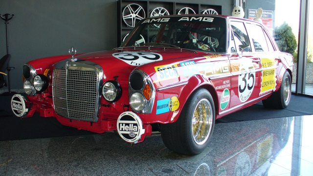 Einen historischen Erfolg erzielte auch der 300 SEL 6.8 AMG im Jahr 1971: Angetrieben von einem AMG V8-Motor mit 6,8 Liter Hubraum und 315 kW (428 PS), überquerte die feuerrote Rennlimousine gleich bei ihrem ersten Einsatz beim 24-Stunden-Rennen von Spa-Francorchamps (Belgien) als Zweiter die Ziellinie und sorgte für einen Klassensieg.