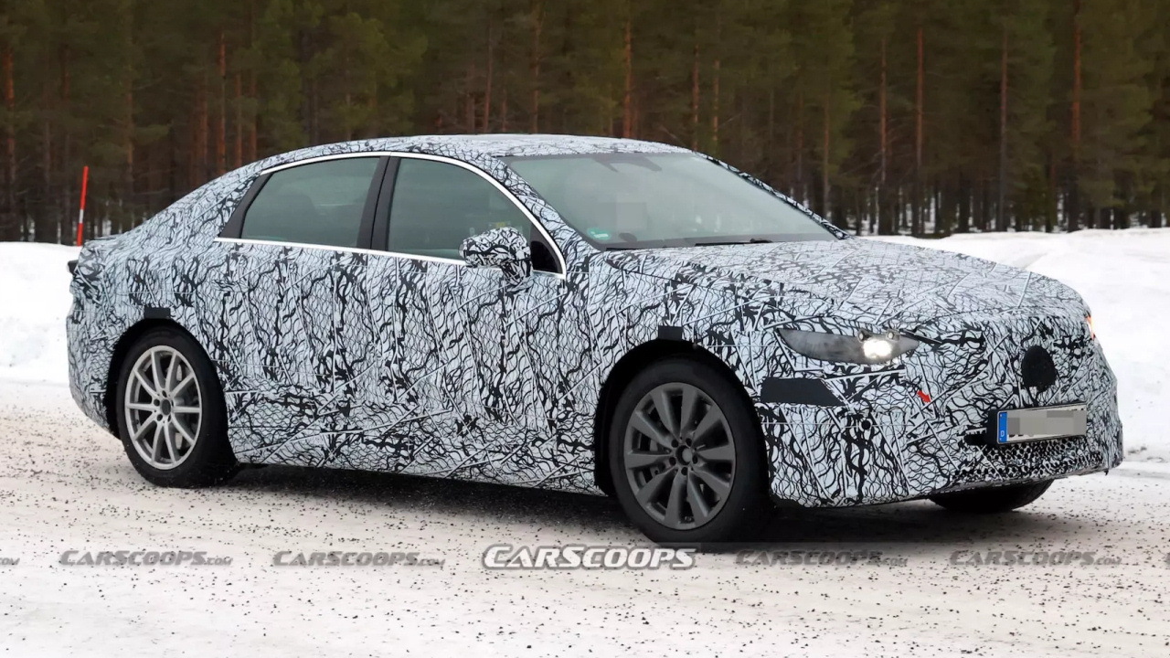 Wahrscheinlich aufgrund der anhaltenden Kritik an der Optik der aktuellen EQ-Modelle werden Anpassungen erprobt, die wieder auf eine klassischere Form der Fahrzeugfront schließen lässt. Hier ein Erlkönig-Foto vom Januar 2025 der Kollegen von CarScoops: