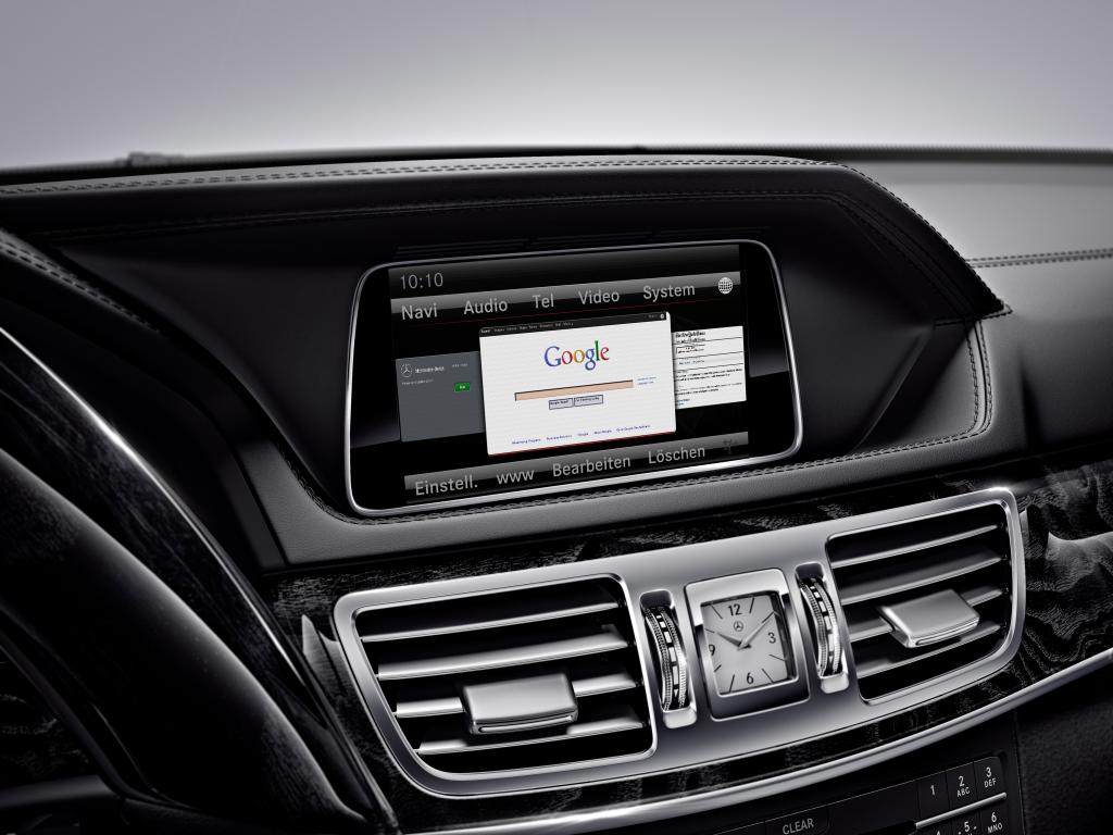 Mit der neuen Telematikgeneration bleibt Mercedes-Benz eng am Pulsschlag der sich rasch weiter entwickelnden Kommunikations- und Medientechnik. Das moderne Multimedia-System COMAND Online der E-Klasse ist mit einem Bluetooth®-fähigen Mobiltelefon mit Datenoption internetfähig. Damit ist freies Internetsurfen bei Fahrzeugstillstand möglich. Während der Fahrt können die Mercedes-Benz Apps „Mercedes-Benz Radio“ und „Service Mercedes-Benz“ uneingeschränkt genutzt werden.