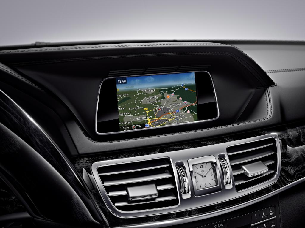 Wie bisher stehen für die E-Klasse drei Multimedia-Systeme zur Verfügung. Serienmäßig ist das Audio 20 CD installiert, das auch mit einer Vorrüstung für das in der E-Klasse neue Navigationssystem Garmin® MAP PILOT gewählt werden kann. Alternativ dazu bietet Mercedes-Benz das System COMAND Online inklusive DVD-Single-Laufwerk an. Gemeinsam ist allen ein hochauflösendes, farbiges 7-Zoll-Media-Display (17,8 cm) mit einer hohen Auflösung von 800 x 480 Pixel, das mit Animationen und 3D-Effekten brilliert.